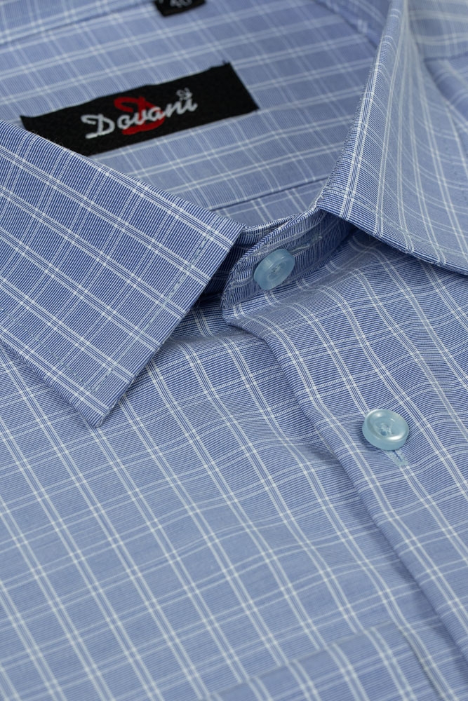 Camasa barbati clasica de culoare albastra cu carouri albe, din bumbac 65% si poliester 35%. Este o camasa clasica care se poate asorta foarte usor, iar inchiderea se face cu nasturi albastri.