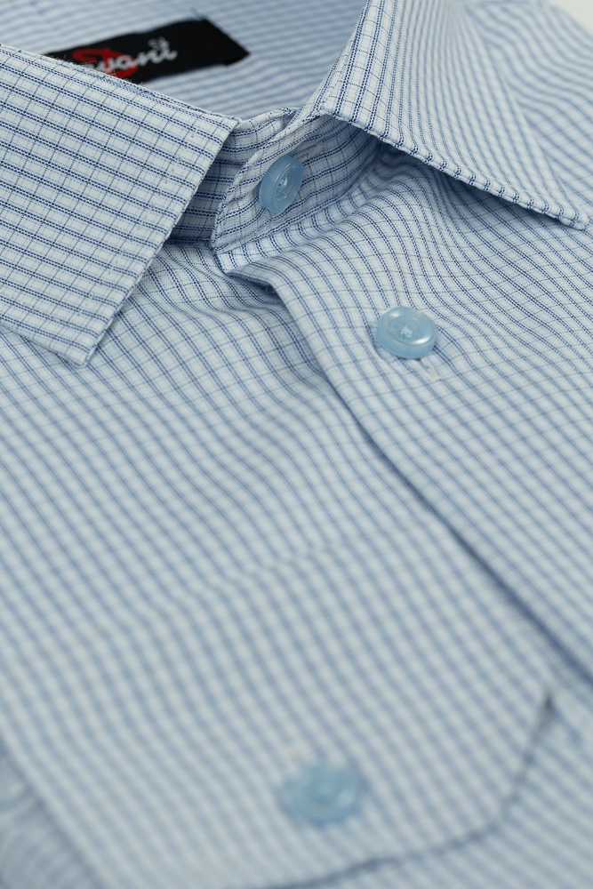 Cămașa bărbătească clasica de culoare bleu in carouri. Aceasta este realizată din bumbac 65% și poliester 35%, aranjându-se echilibrat pe trup datorită croiului de care dispune această cămașa.