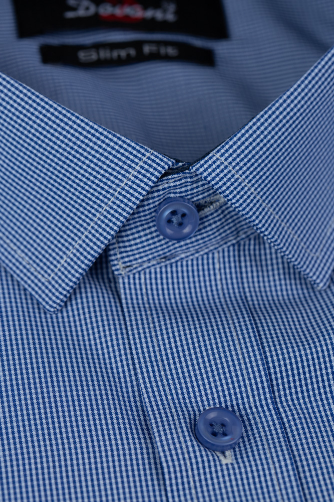 Cămașa bărbătească slim în nuanța bleumarin in carouri este o piesă vestimentară atemporală. Aceasta este realizată din 65% bumbac si 35% poliester, aranjându-se perfect pe trup datorită croiului Slim de care dispune cămașa.