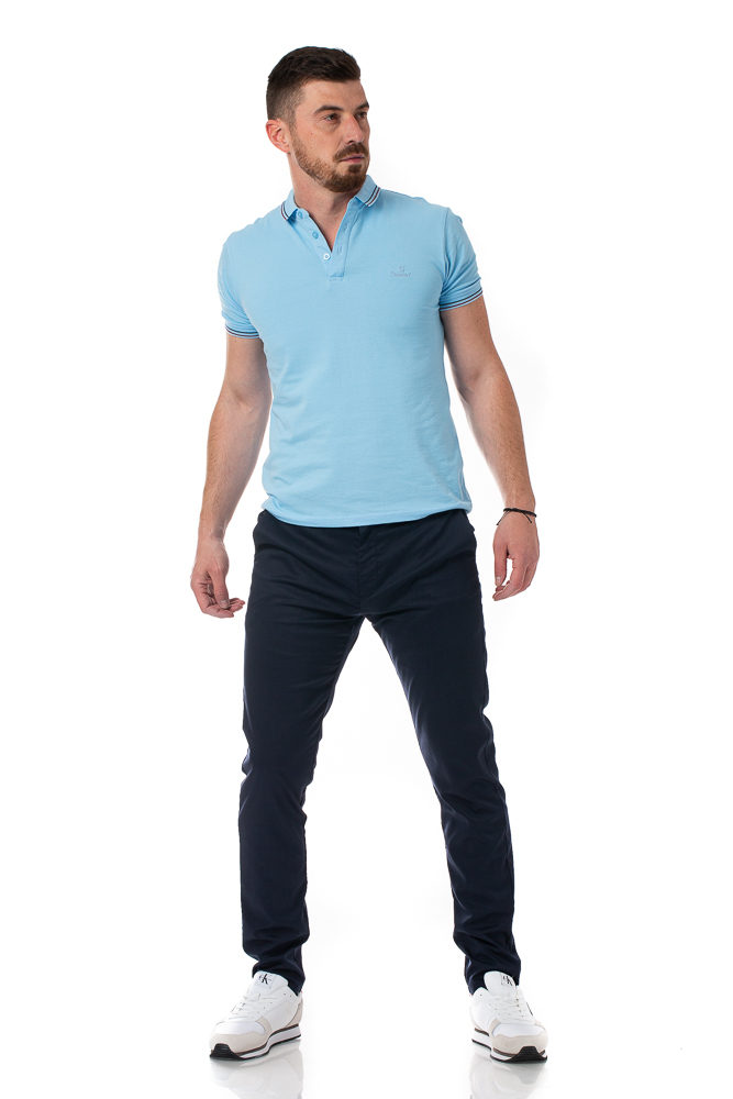 Pantaloni barbati de culoare gri confectionati din 59% poliester, 22% lyoncell, 16% modal, 3% spandex.