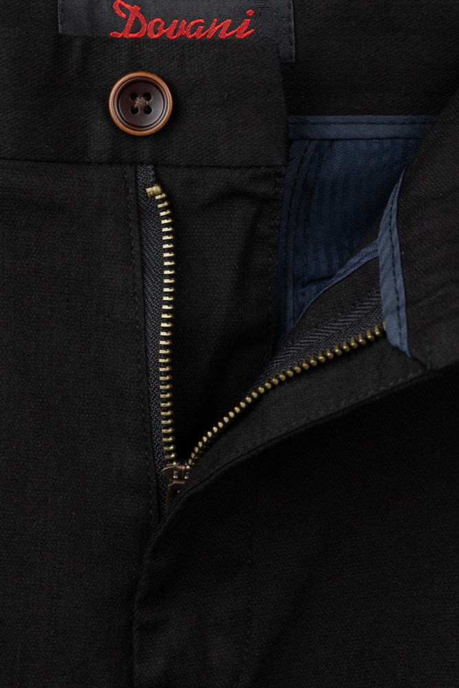 Pantaloni barbati de culoare neagra. Acesti pantaloni au o croiala regular, au patru buzunare, doua in partea din fata oblice si doua in partea din spate. Se inchid cu nasturi si fermoar si sunt realizati din 75% bumbac, 23% poliester si 2% spandex.