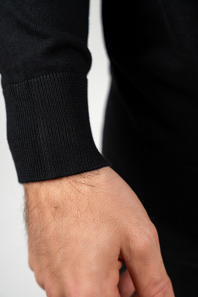 Pulover cu guler lung. Este fabricat din 50% bumbac 50% vâscoză.