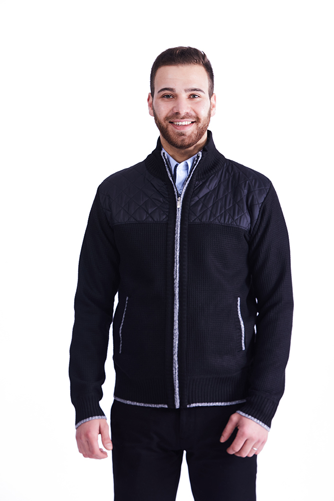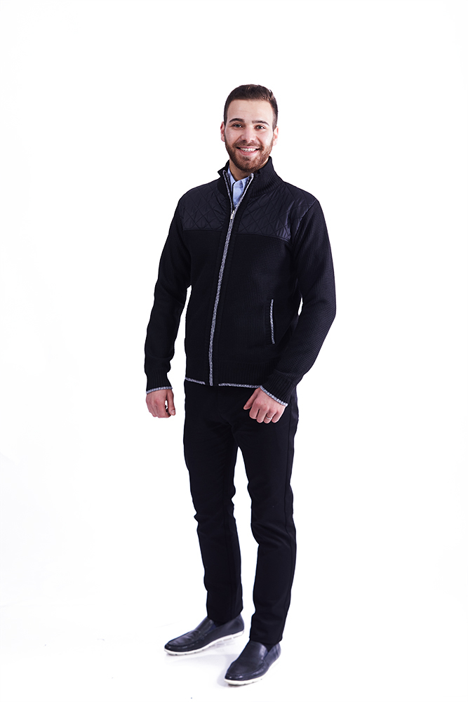 Puloverul negru cu fermoar este o piesă vestimentară perfectă pentru temperaturile răcoroase.