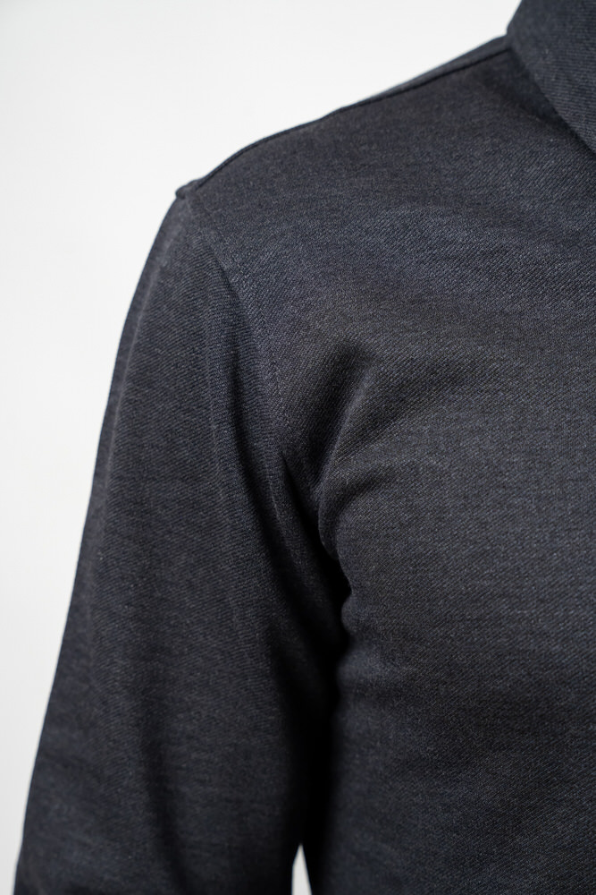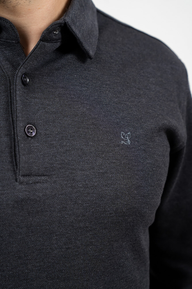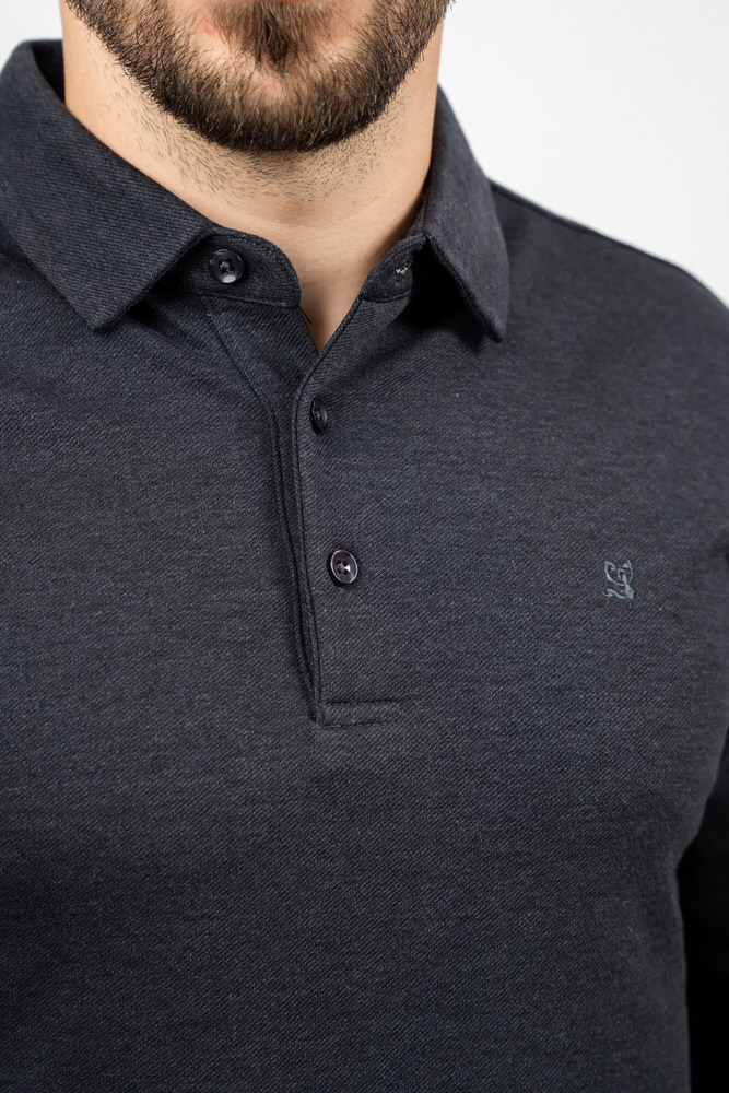 Tricou de culoare gri plumb, cu mânecă lungă tip polo și fenta cu trei nasturi.