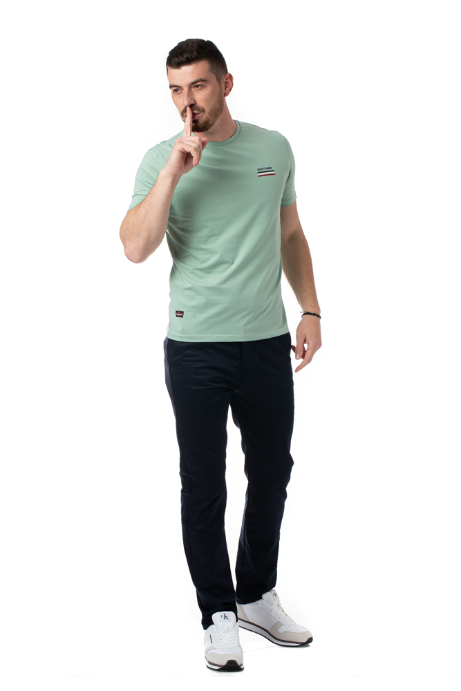 Tricoul este confecționat din 100% bumbac. Tricoul dispune de guler rotund.