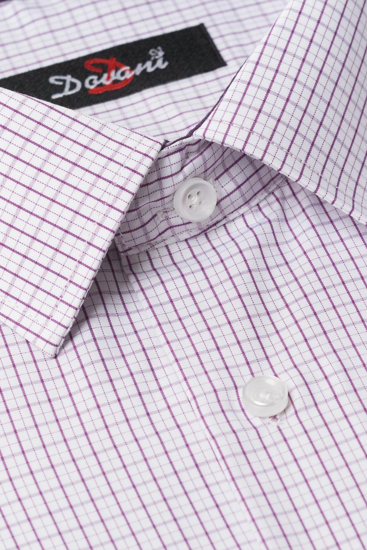 Camasa barbati clasica alba cu dungi subtiri bordo cu maneca scurta. Camasa este realizata dupa un tipar clasic, cu doi plii la spate si un buzunar la piept. Este confectionata din tesatura de bumbac 65% in amestec cu poliester 35%.