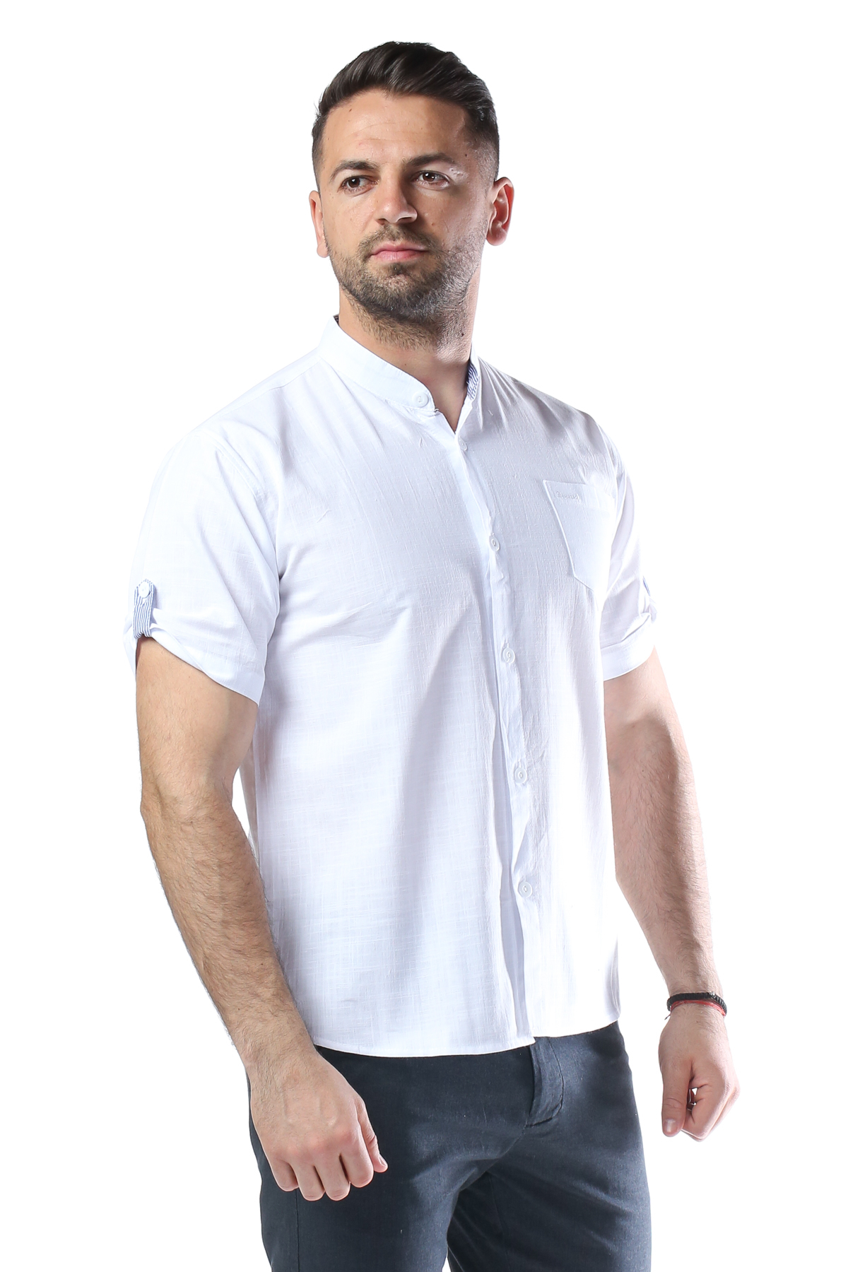 Camasa casual barbati cu maneca scurta. Culoarea alba, gulerul tunica si materialul subtire sunt elementele principale ale acestei camasi. Realizata din bumbac (65%) si poliester (35%) aceasta camasa este usor de asortat si accesorizat. Dispune de buzunar aplicat pe partea stanga.
