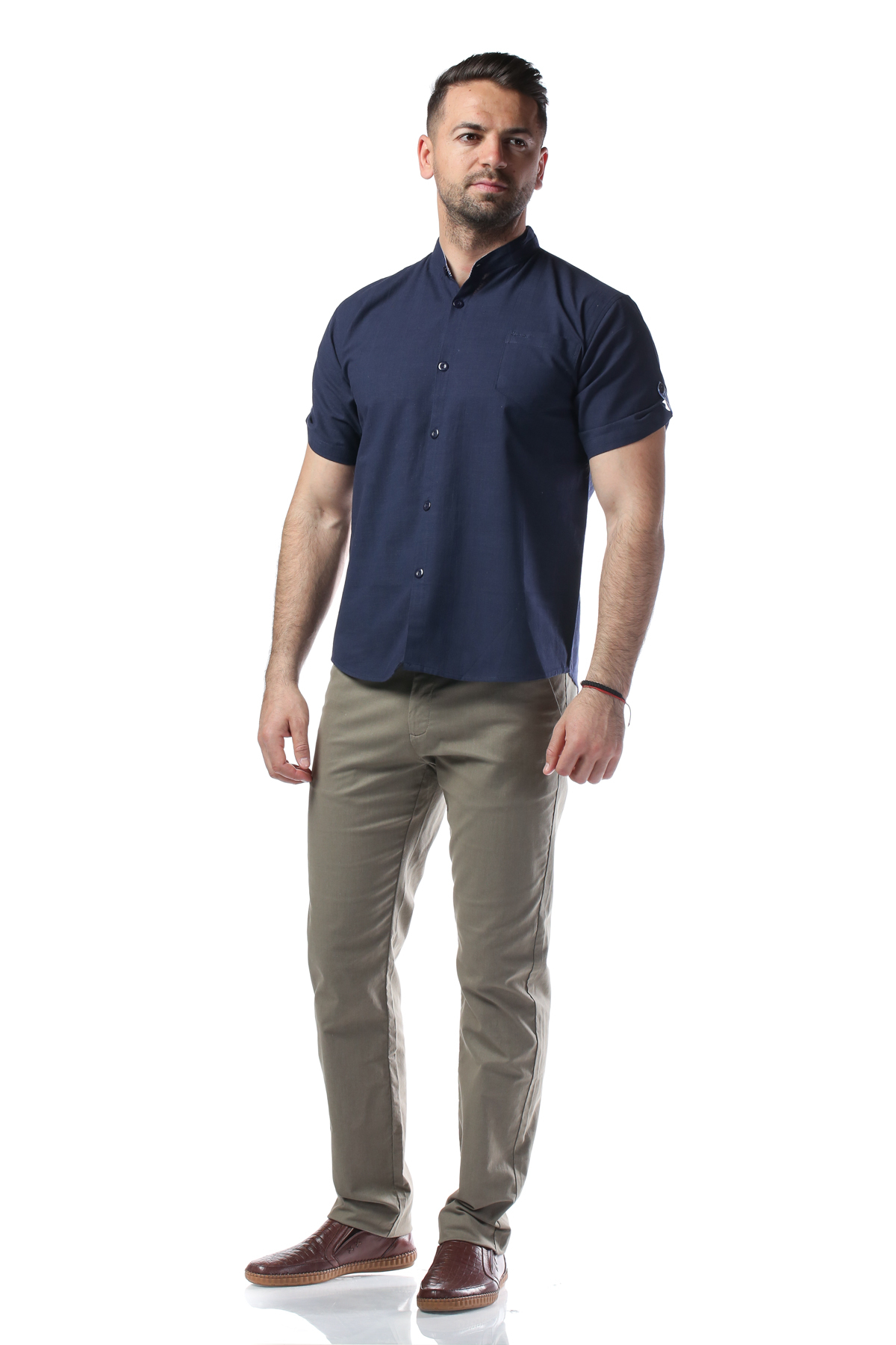 Camasa casual barbati cu maneca scurta. Culoarea bleumarin, gulerul tunica si materialul subtire sunt elementele principale ale acestei camasi. Realizata din bumbac (65%) si poliester (35%) aceasta camasa este usor de asortat si accesorizat. Dispune de buzunar aplicat pe partea stanga.
