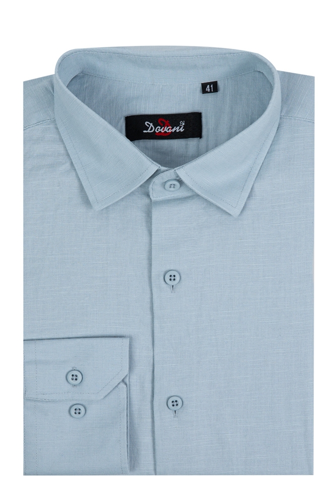 Cămașă pentru bărbați de culoare albastru de chiciura, cu mânecă lungă.