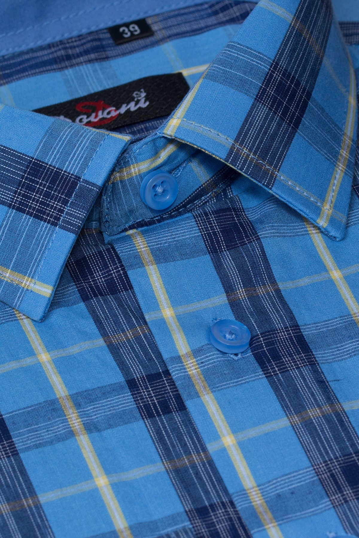 Camasa pentru barbati in carouri bleumarin cu albastru si alb, realizata din bumbac 100%. Camasa este croita dupa un tipar clasic, maneca este lunga iar inchiderea se face cu nasturi de culoare albastra. La ora actuala, carourile sunt cele mai populare imprimeuri. Fiind o combinatie placuta de culori puteti asorta camasa in diverse combinatii de tinute.