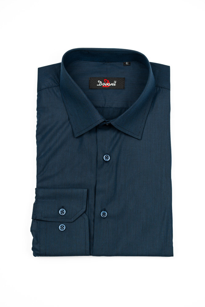 Cămașă pentru bărbați de culoare bleumarin, cu mânecă lungă, în croi clasic. Este realizată din 65% bumbac 35% poliester.