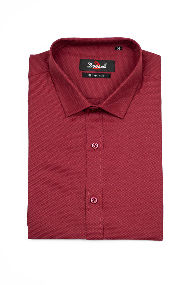 Cămașă pentru bărbați de culoare vișinie, cu mânecă lungă, în croi slim. Este realizată din 65% bumbac 35% poliester.