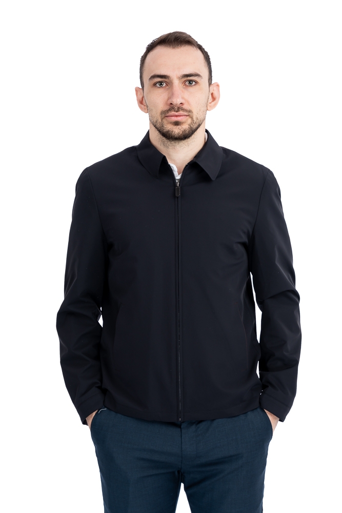 Geacă waterproof cu guler rever și închidere cu fermoar. Are două buzunare laterale în față și două în interior.