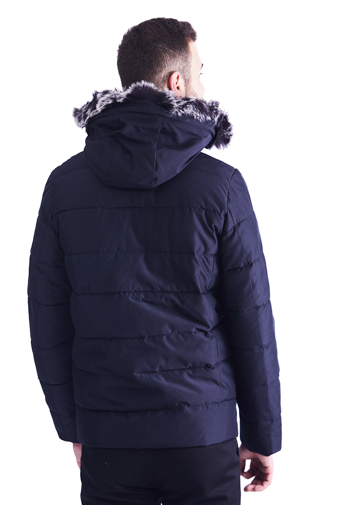 Geaca bărbătească bleumarin, confecționată din 100% poliester.