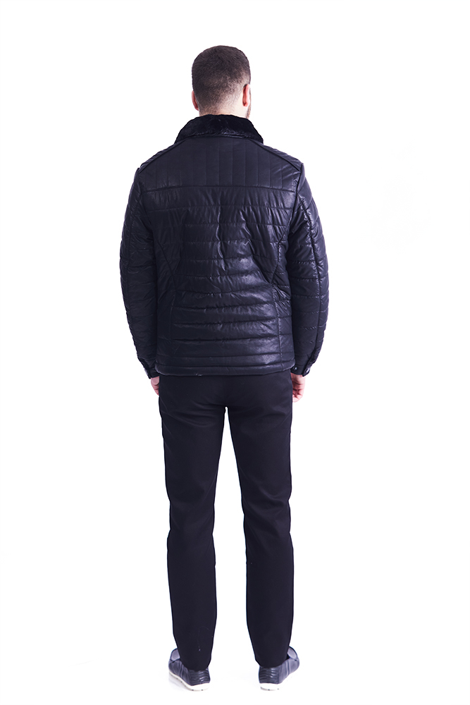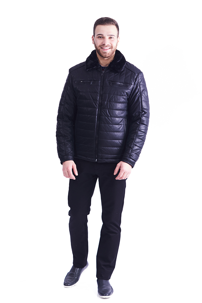 Geaca bărbătească neagra, cu gluga cu blăniță detașabilă.