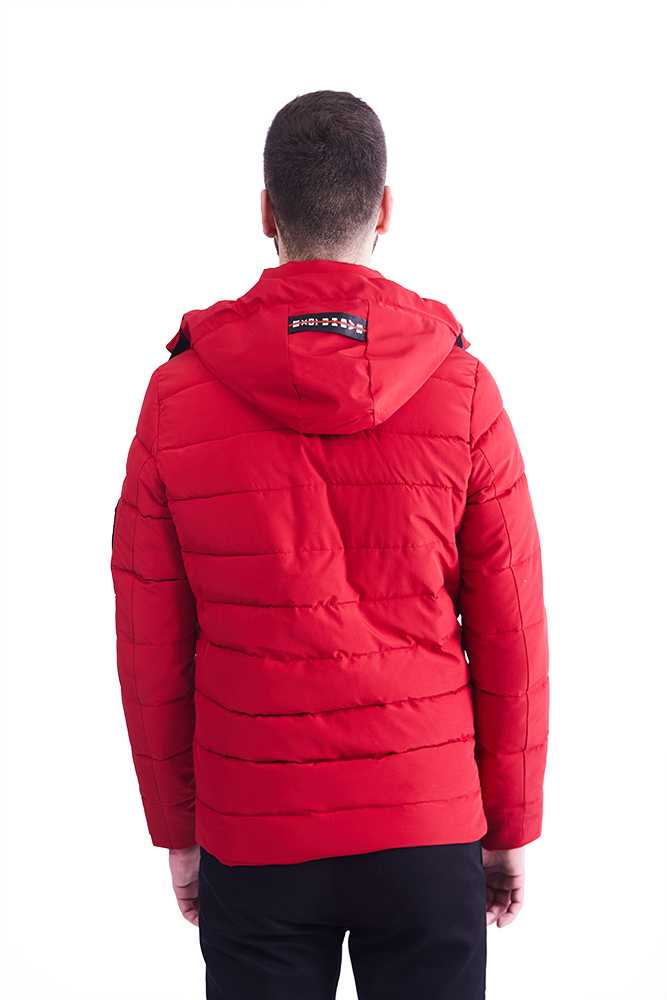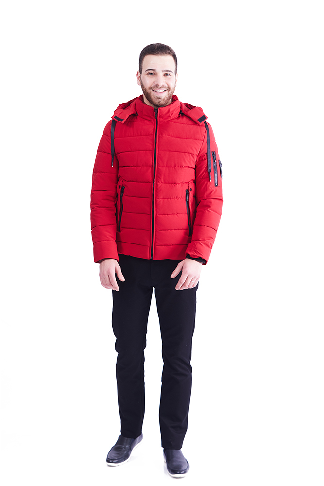 Geaca bărbătească roșie, confecționată din 100% poliester.