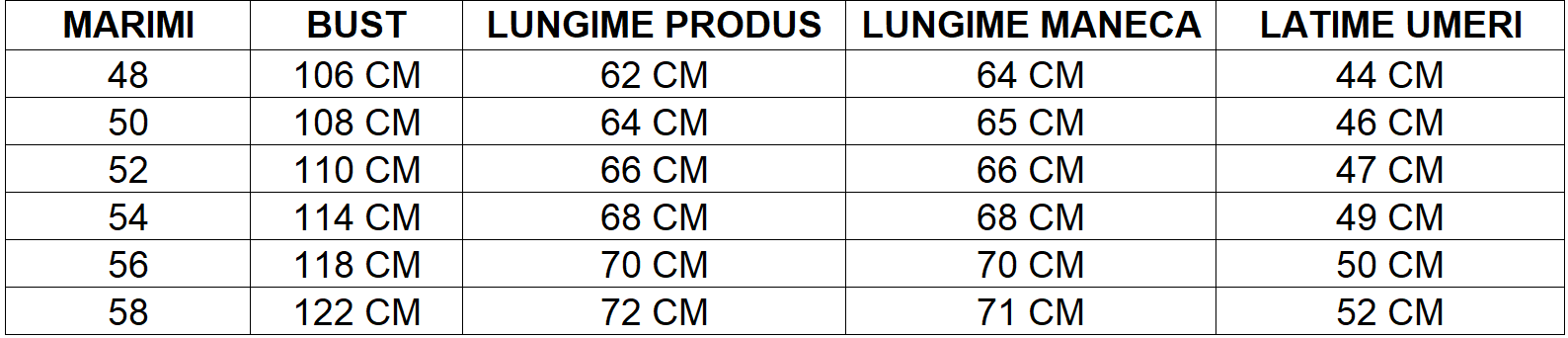 Cojoc de lungime medie cu guler tunică și închidere cu fermoar. Are două buzunare laterale care se închid cu fermoar.