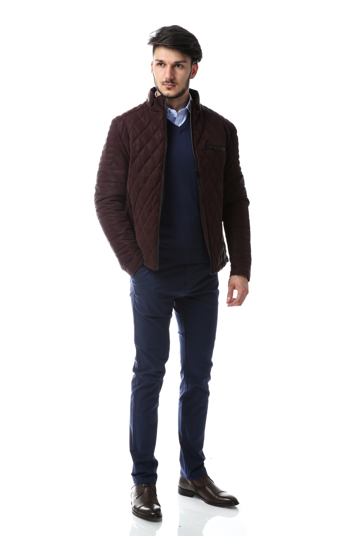Geaca cu guler tunica, inchidere cu fermoar, doua buzunare cu fermoar in fata si unul la piept in partea stanga si doua buzunare interioare. Maneca se termina cu o manseta ingusta cu capsa. Este un model clasic drept.