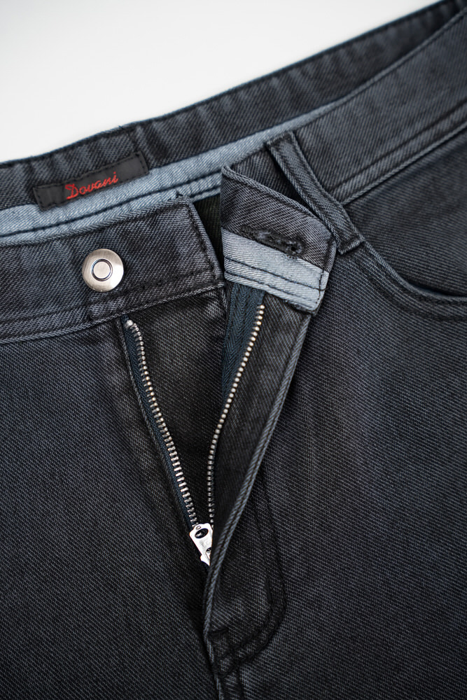 Pantaloni bărbați de culoare gri închis. Temperatura optimă de spălare este de 30 de grade.