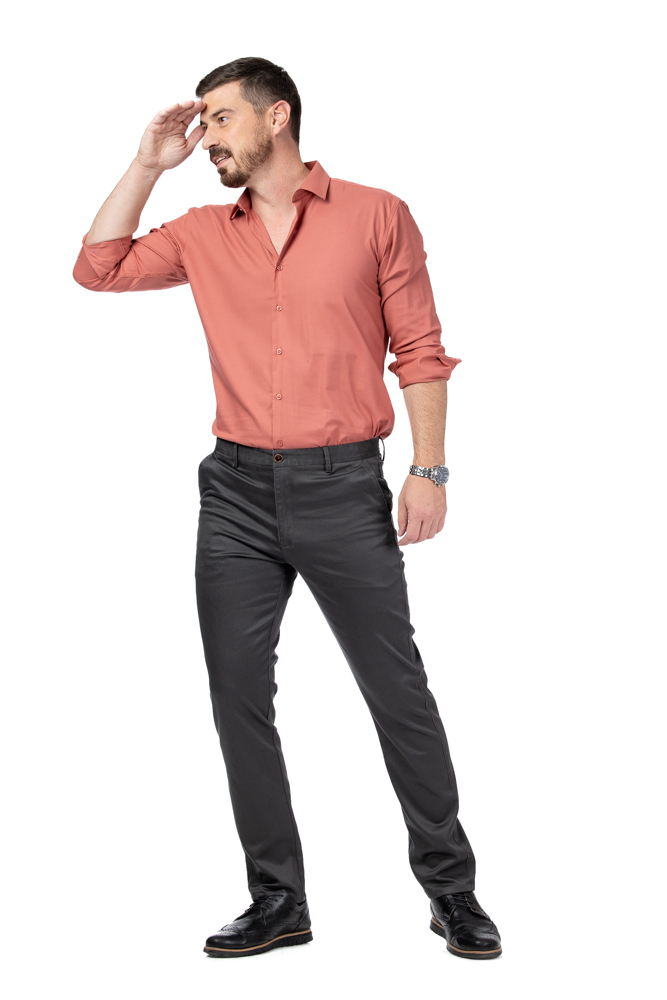 Pantalon bărbați, croiala regular, culoare gri deschis.