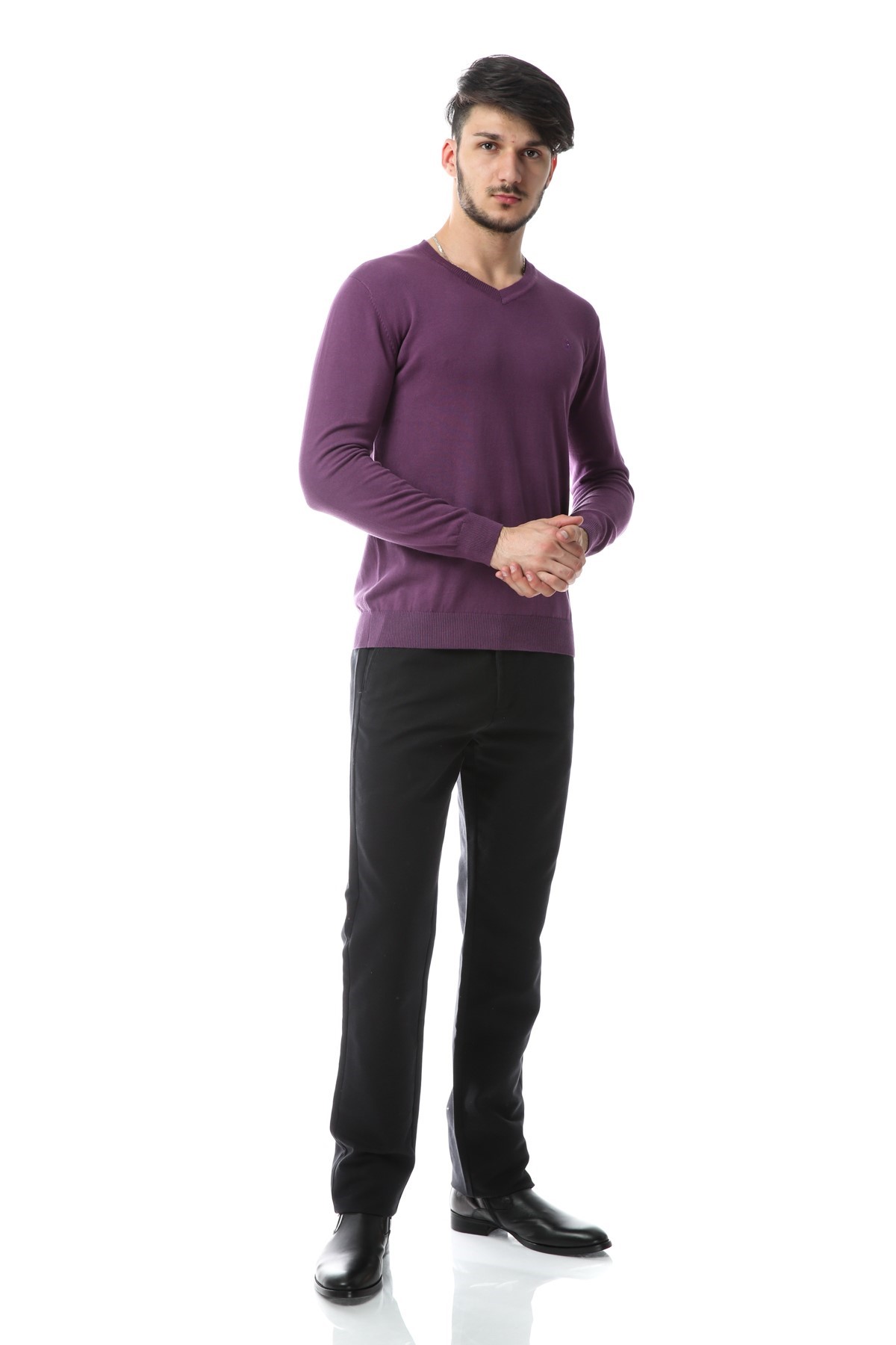 Pantaloni barbati de culoare gri inchis spre negru.