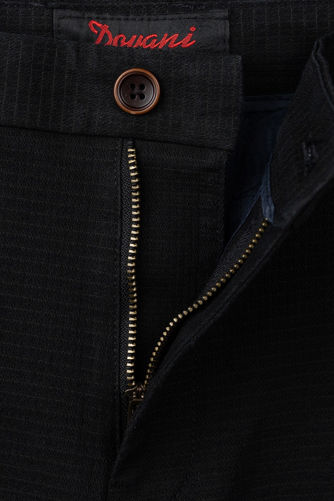 Pantaloni barbati de culoare neagra. Acesti pantaloni au o croiala regular, au patru buzunare, doua in partea din fata oblice si doua in partea din spate. Se inchid cu nasturi si fermoar si sunt realizati din 65% bumbac, 33% poliester si 2% spandex.