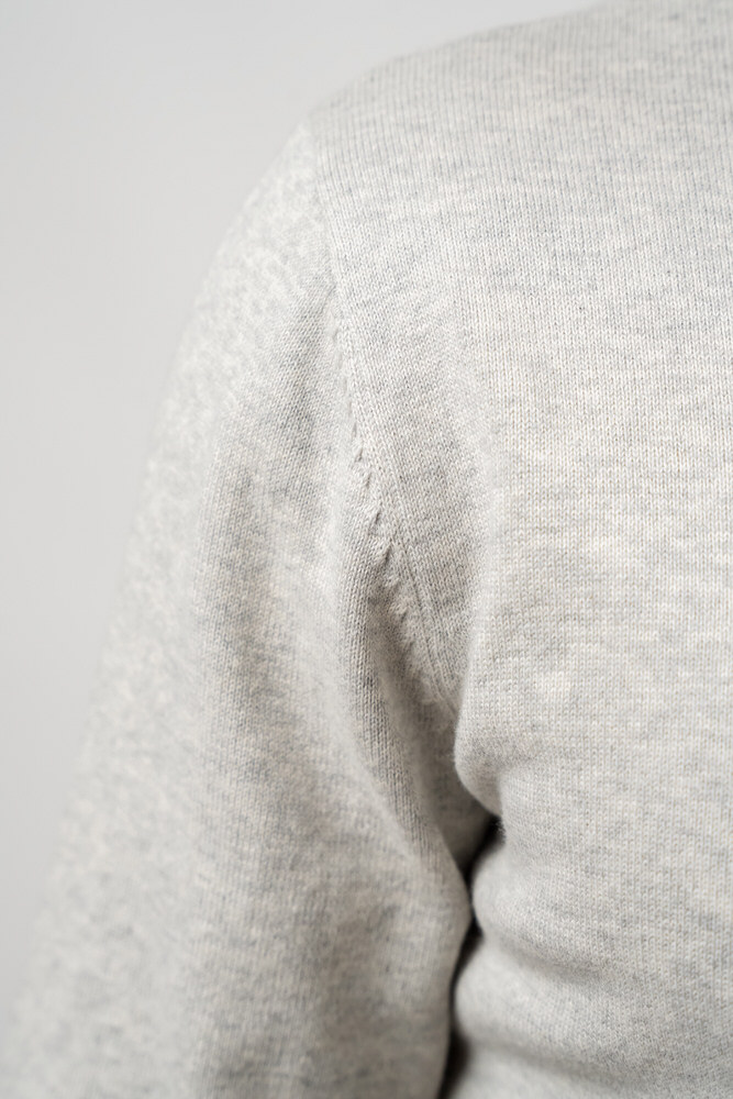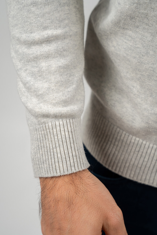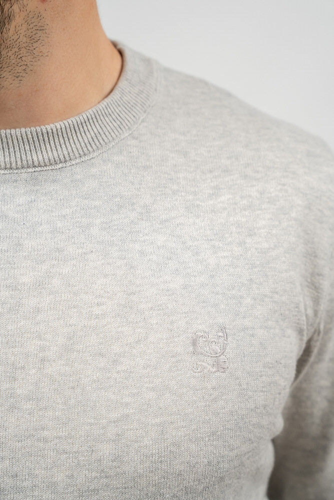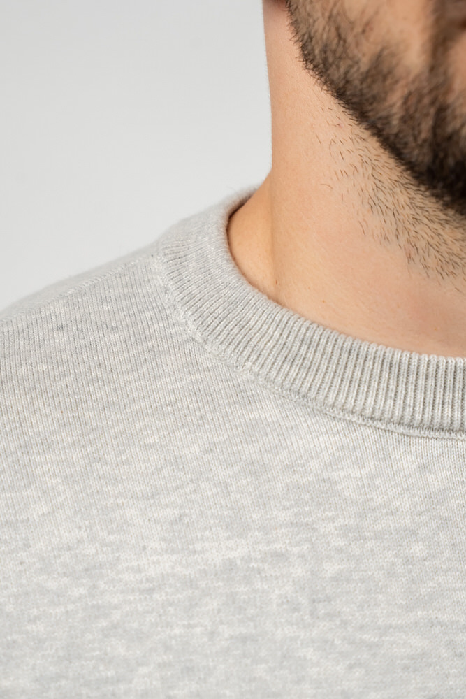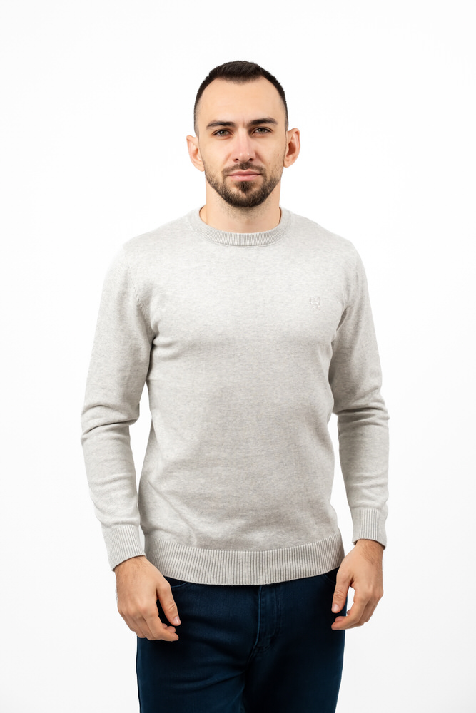 Pulover de culoare gri argintiu cu guler rotund. Este fabricat din 98% bumbac 2% poliester.