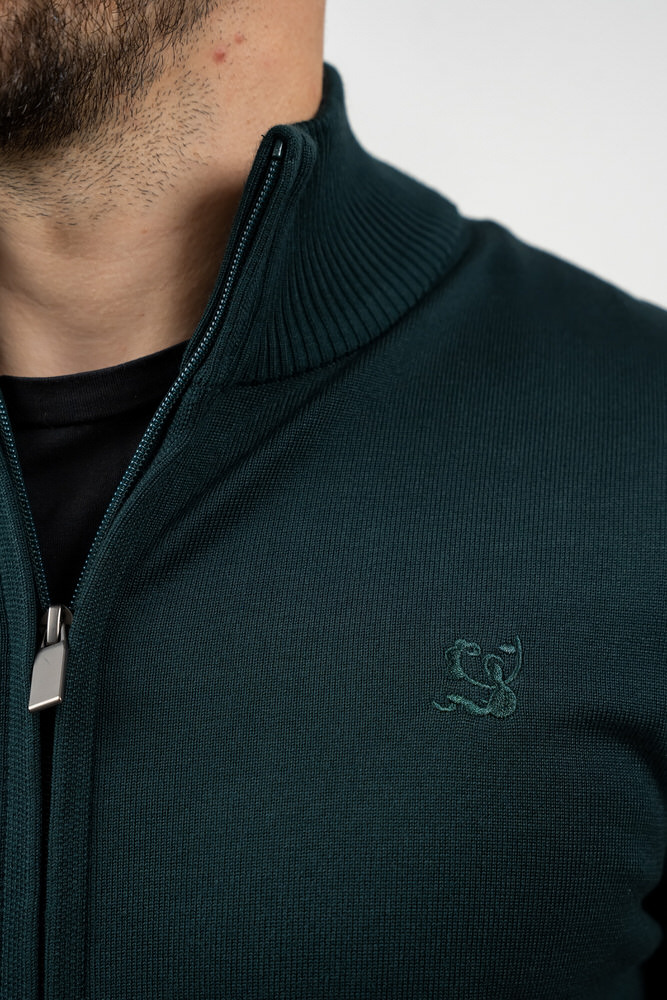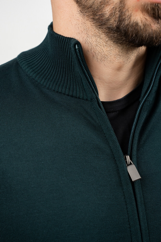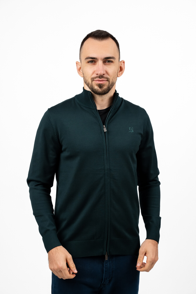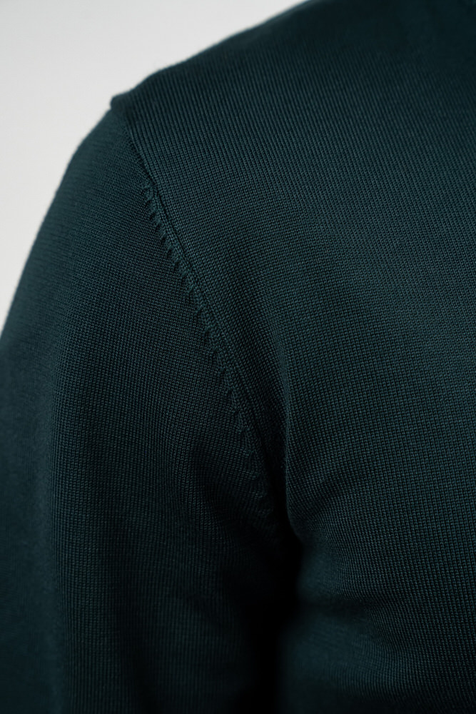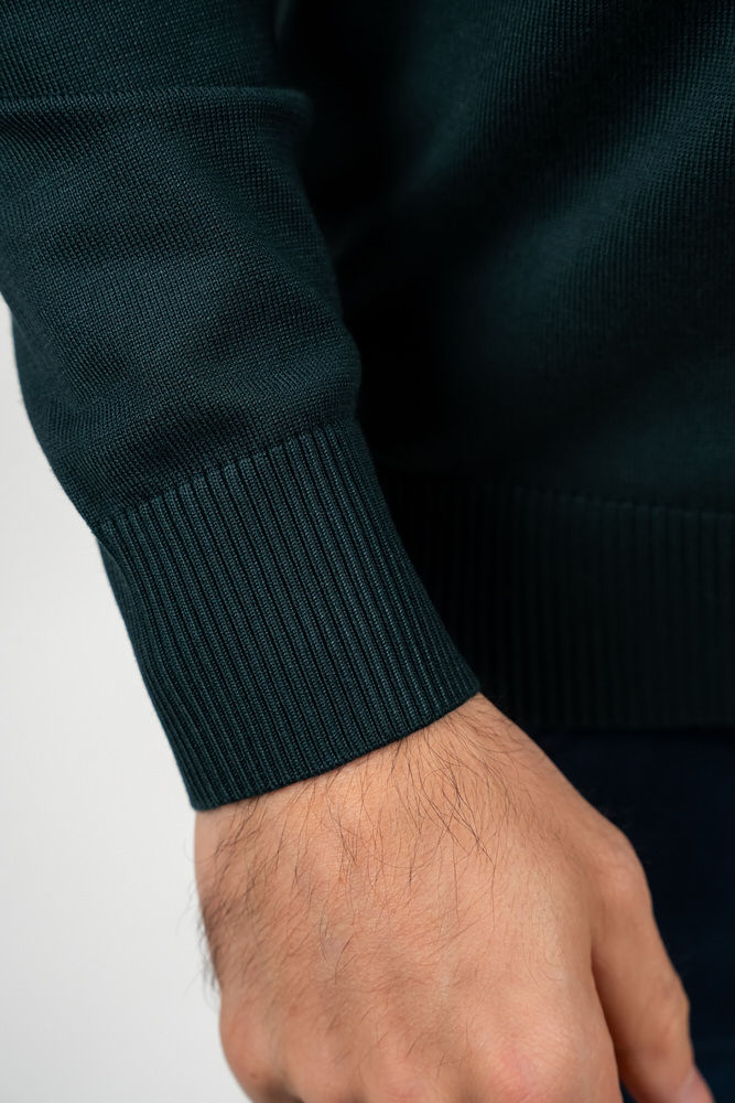 Pulover de culoare verde englez cu guler pe gât și fermoar lung. Este fabricat din 50% bumbac 50% vâscoză.