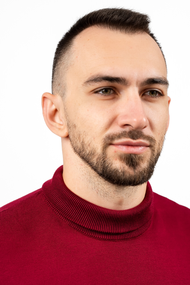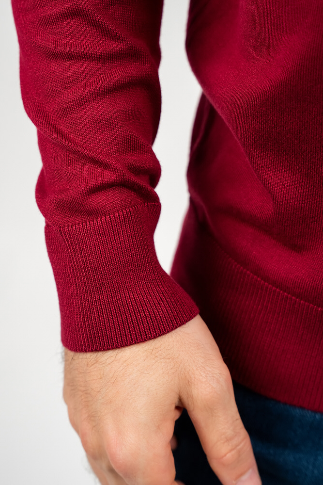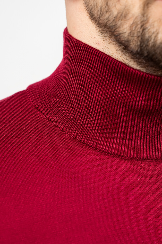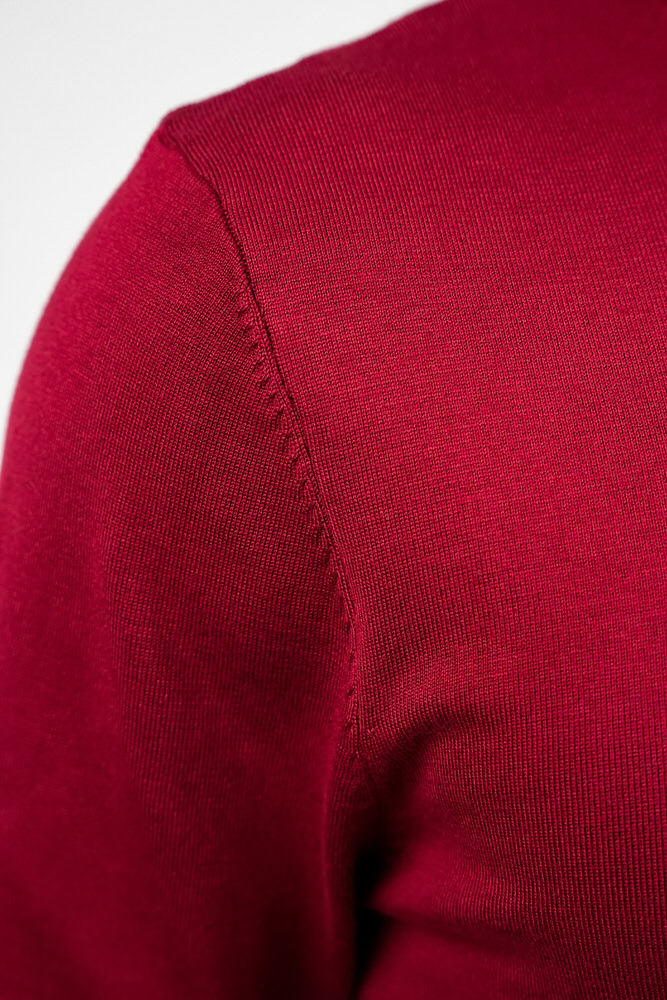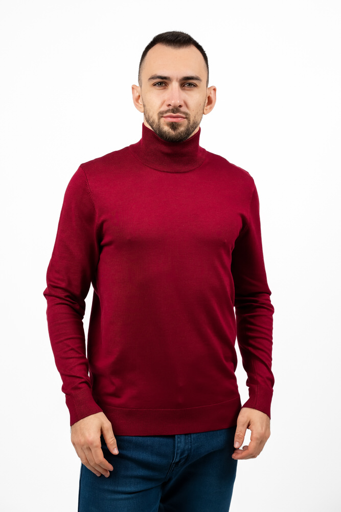 Pulover de culoare vișiniu cu guler pe gât. Este fabricat din 50% bumbac 50% vâscoză.