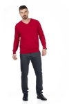 Pulover cu guler in v. Puloverele au la talie si maneci bata reiata