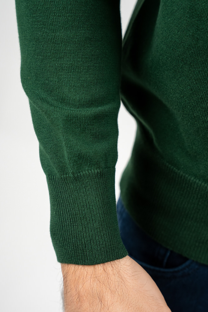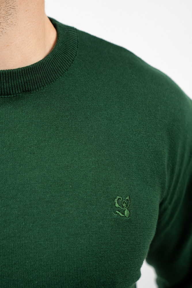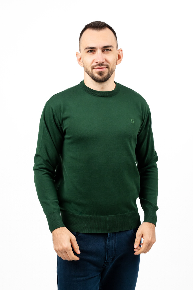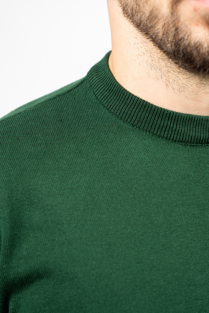 Pulover de culoare verde spanac cu guler rotund. Este fabricat din 100% bumbac.