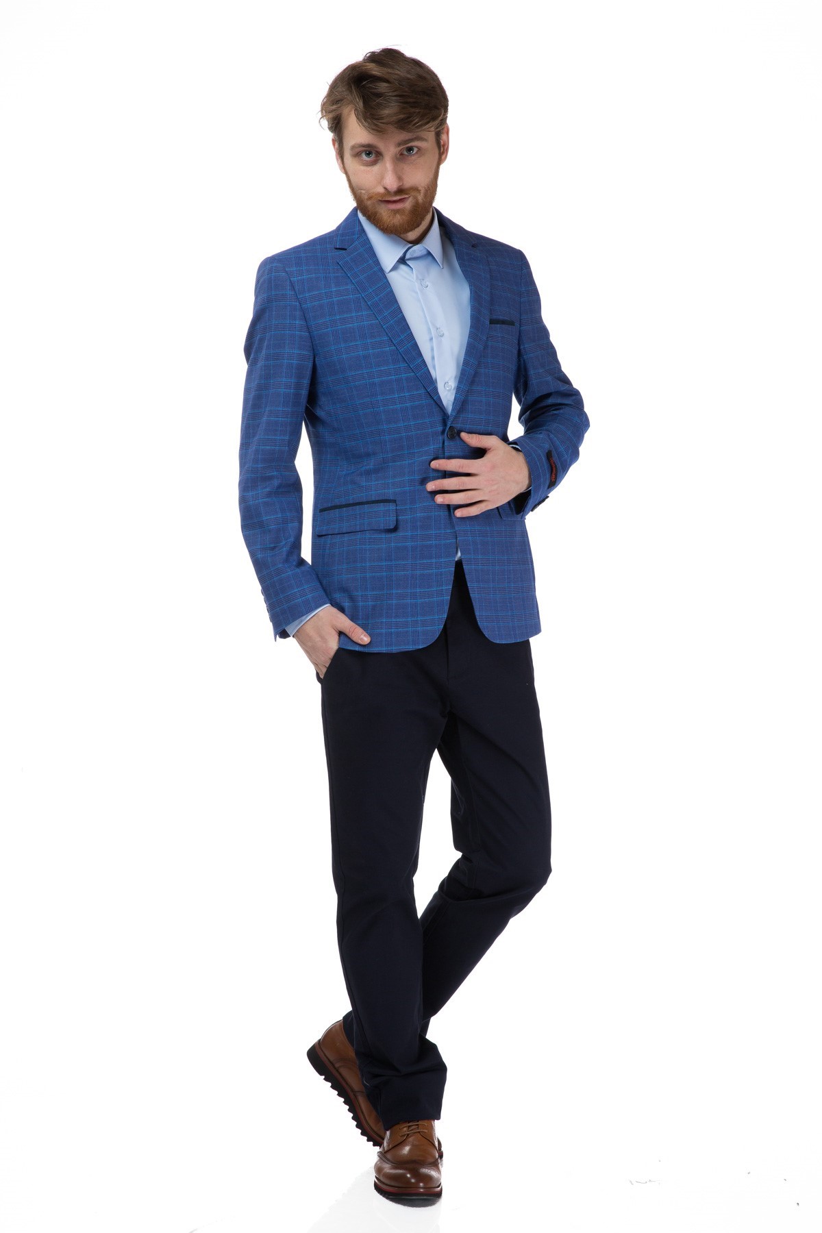 Sacou barbati in carouri, de culoare albastra. Aceasta piesa vestimentara este confectionata din 50% poliester si 50% lana. Desi este perfect pentru tinutele de ocazii, sacoul merge perfect si intr-o combinatie stilistica smart casual datorita versatilitatii materialelor din care este realizat.