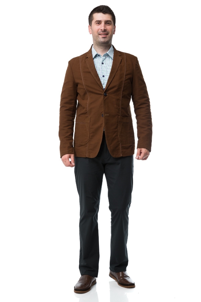 Sacou barbati stil clasic, cu croi regular si de culoare maro. Confectionat din 100% bumbac, reuseste sa ofere o nota office oricarei tinute.
