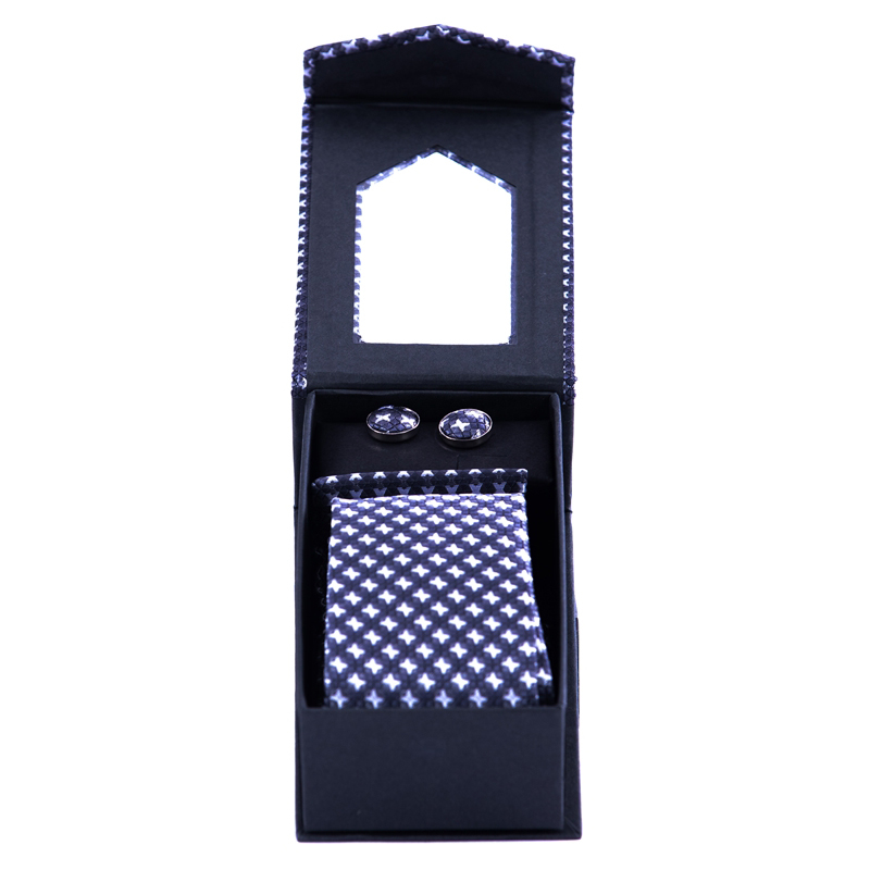 Set butoni, cravata si batista negru cu model alb
