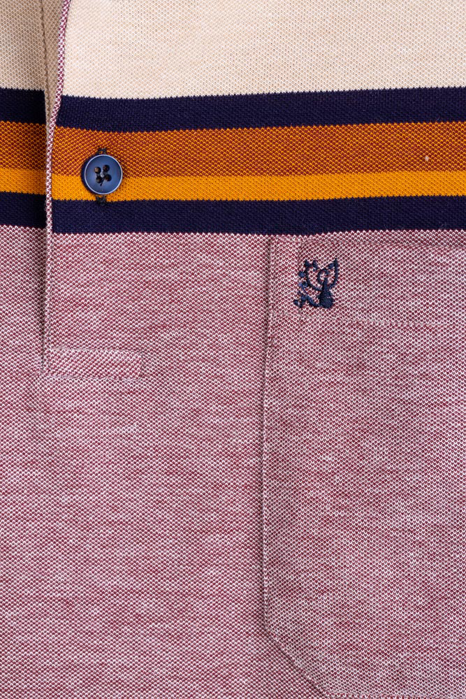 Tricoul este confecționat din 95% bumbac și 5% lycra. Modelul tip polo dispune de guler reiat, buzunar aplicat pe partea stângă și fentă cu 3 nasturi.