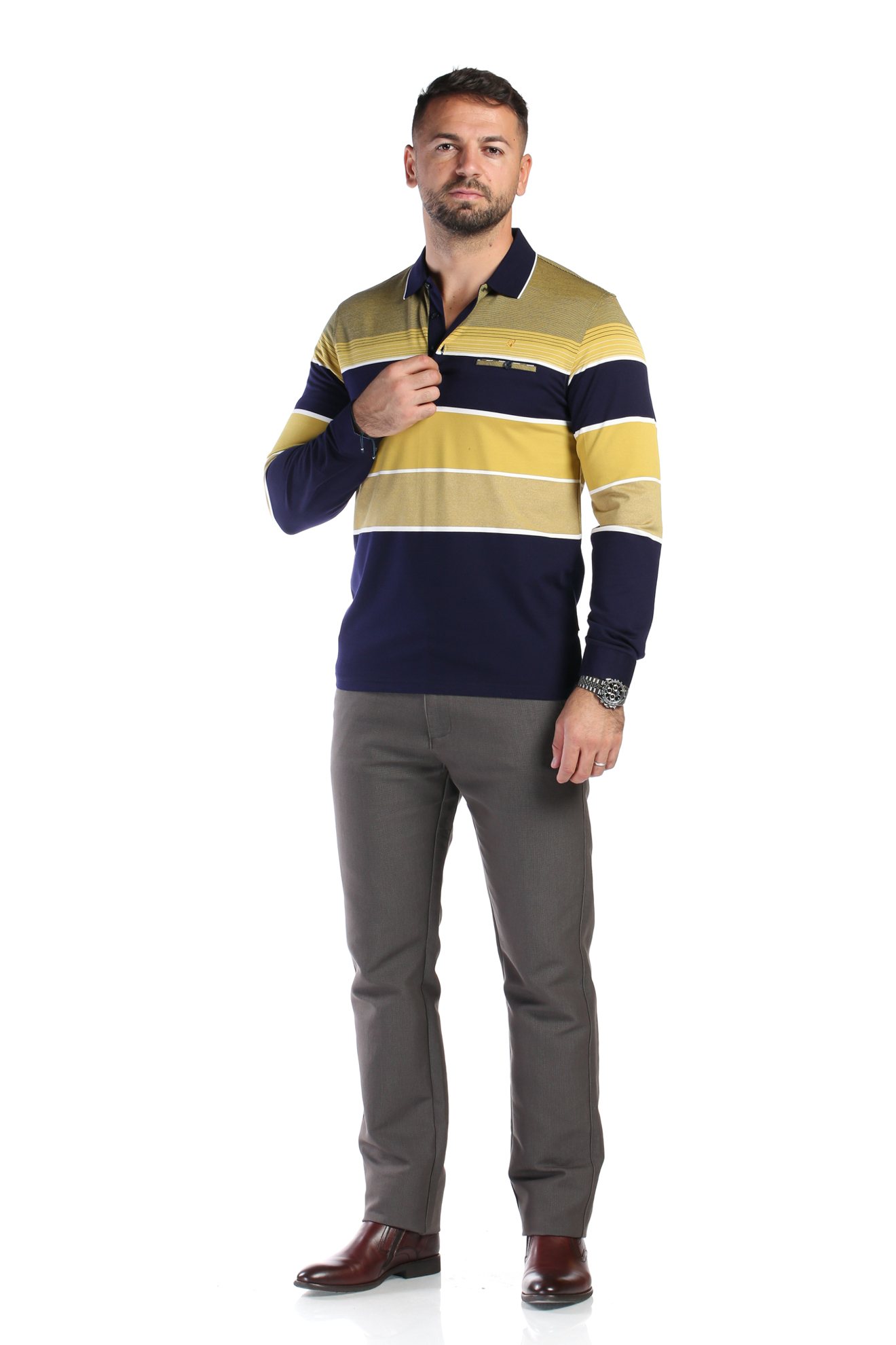 Tricou polo, fenta cu trei nasturi, guler reiat,buzunar pe partea stanga si maneca lunga cu manseta.