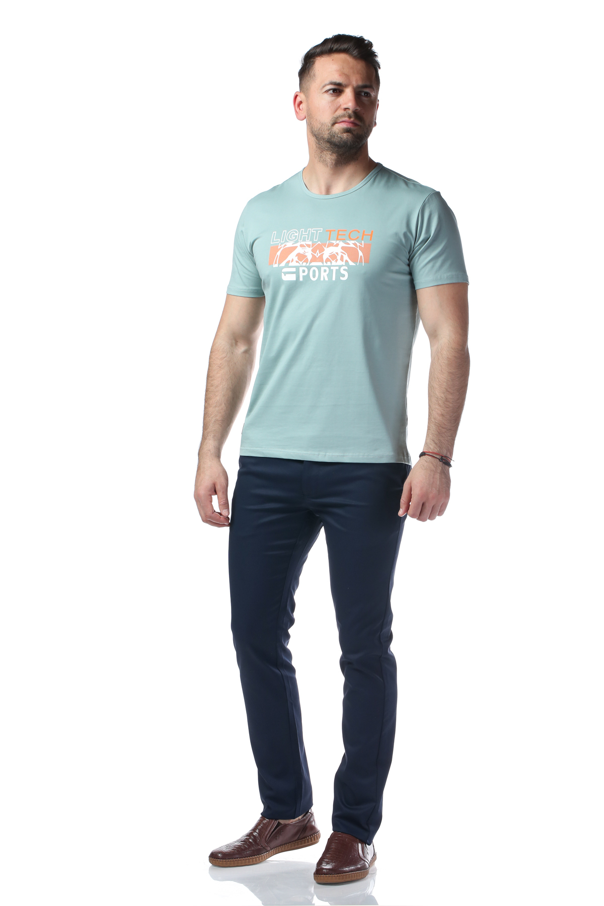Tricou barbati de culoare verde. Tricoul are guler rotund si maneca scurta. Este realizat din bumbac 95% si licra 5%.